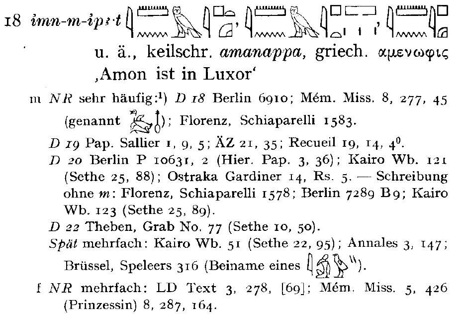 “1006. Papyrus, imperfect, of a person named Anememapt, born of Isis. At the commencement is a vignette, in which the deceased has been worshipping the god Ra, seated on a throne, hawk-headed. The hieroglyphic legend is a dedication to Ra, Harmachis, Tum, Ptah, and Osiris, from the deceased, who is a priest. This is followed by two pages of hieratic inscription, containing the following chapters of the Ritual of the Dead : chap. 23, that of opening the mouth; chap. 26, that of placing the heart; and chap. 19, that of not letting the heart of a person be taken from him in Karmeter or Hades.”