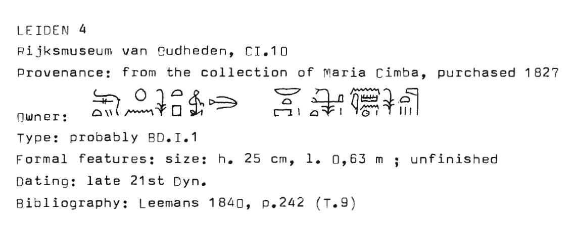 C. Leemans, 1840, Description raisonnée des monumens égyptiens du Musee d’Antiquites des Pays-Bas à Leide, pg. 242 (T.9)