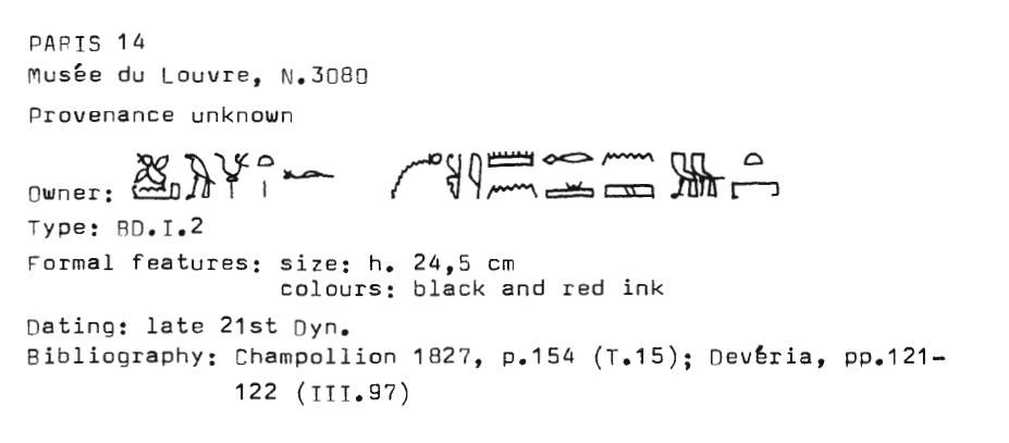 Niwinski dates the papyrus end of the 21st dynasty. The Louvre dates it to the Middle of the 22nd dynasty